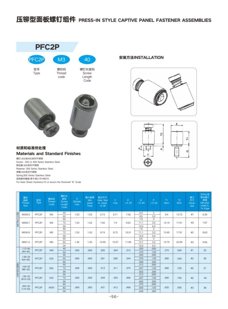Captive Panel Fasteners Screw Phillips Head PFC2P Description