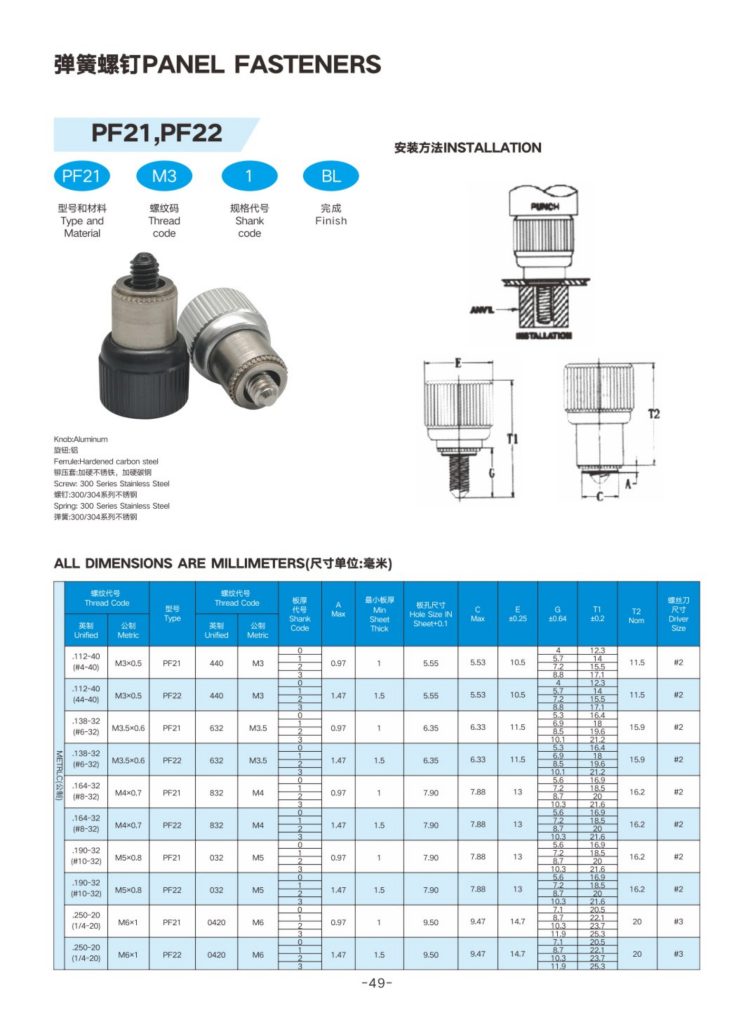 | Products name: | Flare-in Style Panel Captive Screws PF21 PF22 |